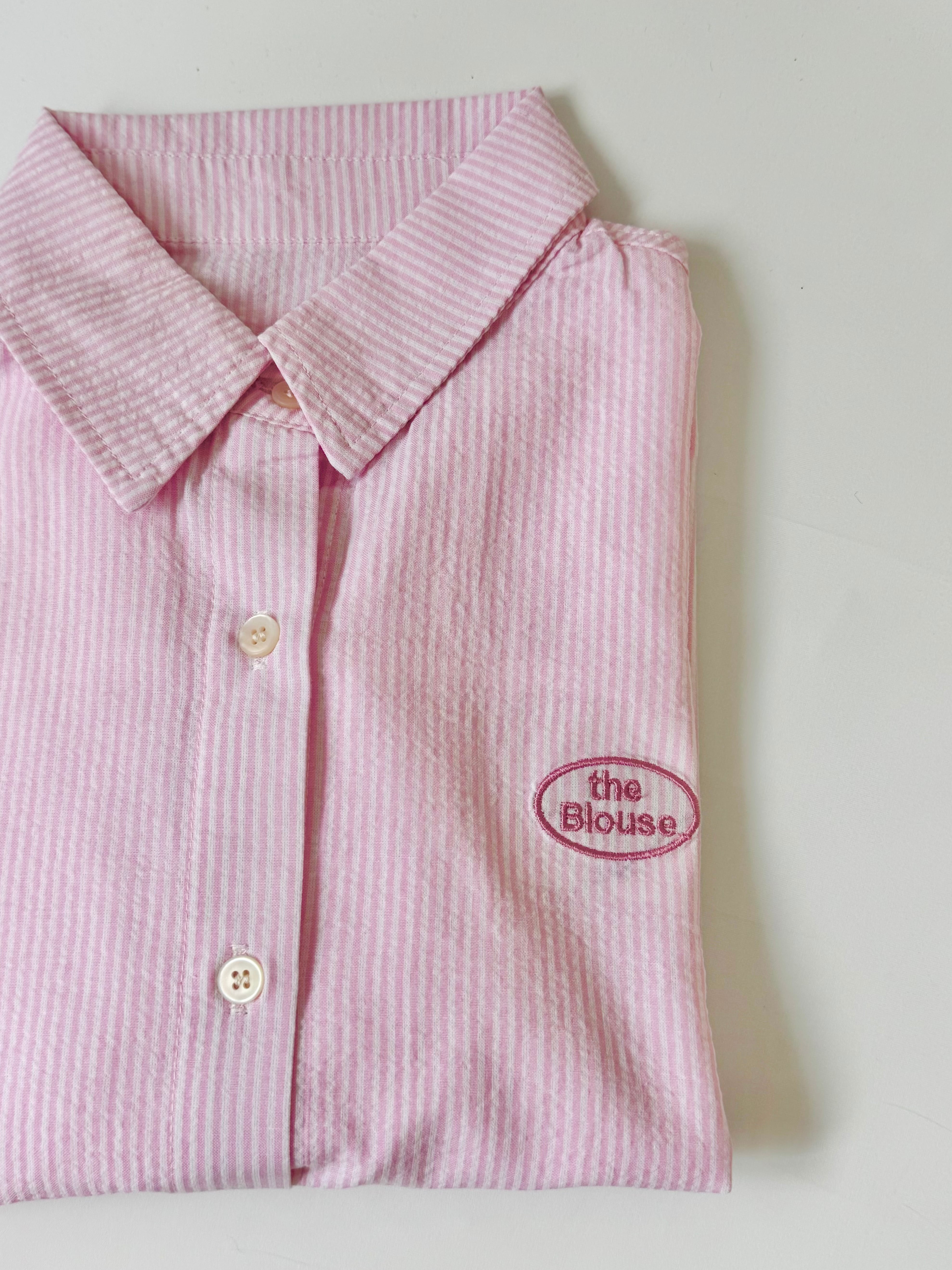 ピンクのストライプが可愛らしいシャツ。