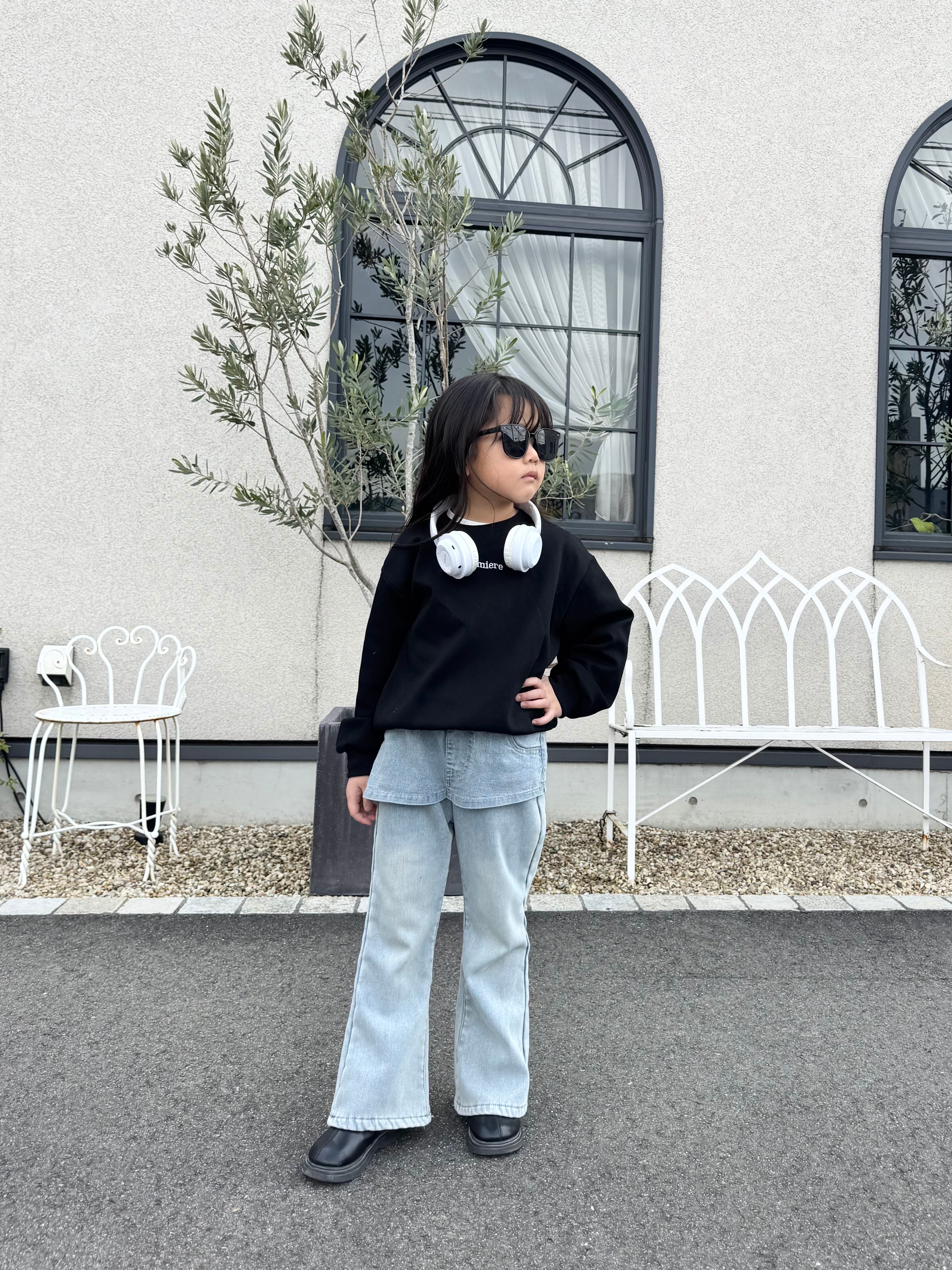 暖か裏起毛フレアデニムパンツ。
